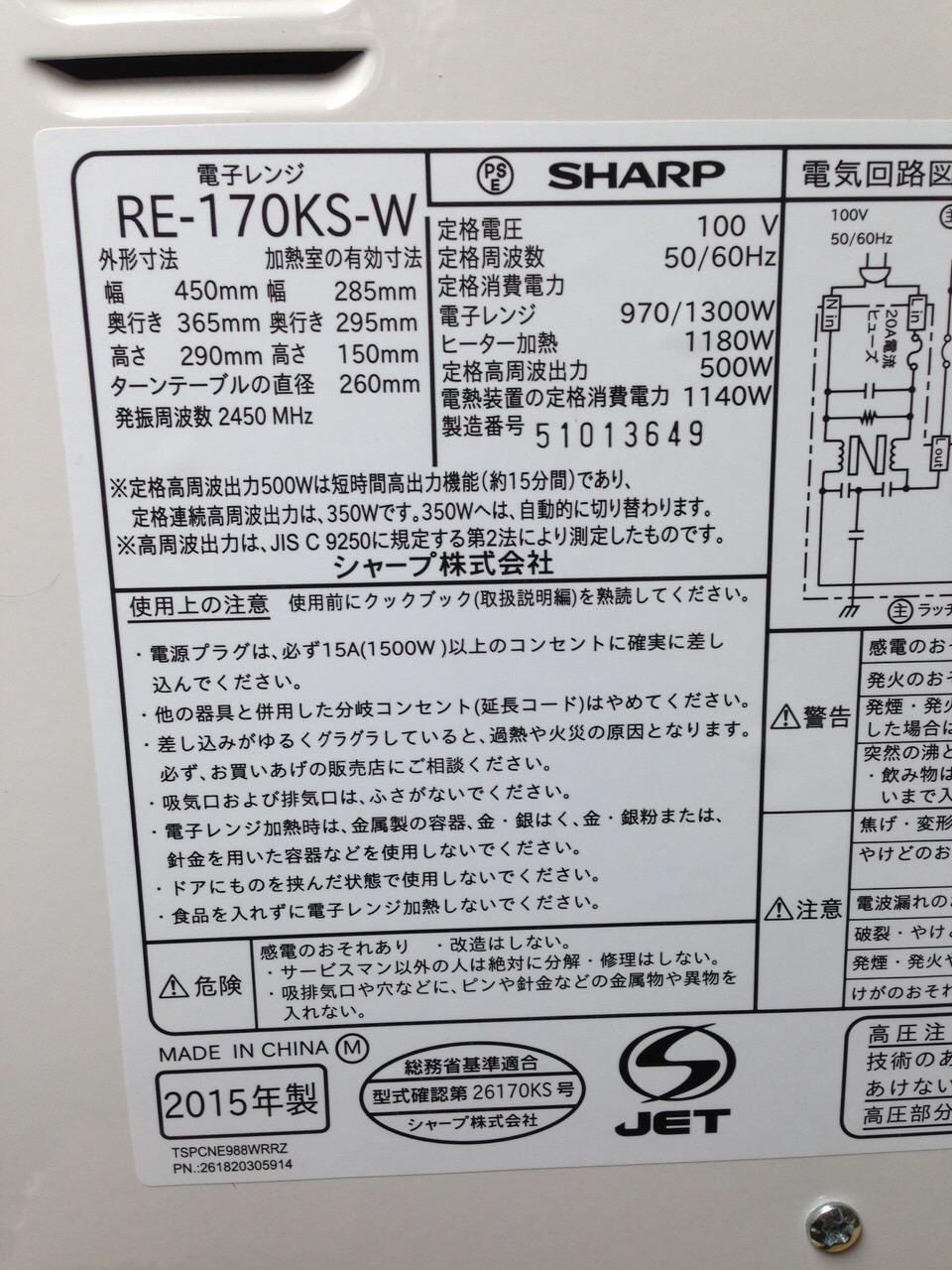 電子レンジ(シャープ製)の回収を致しました。