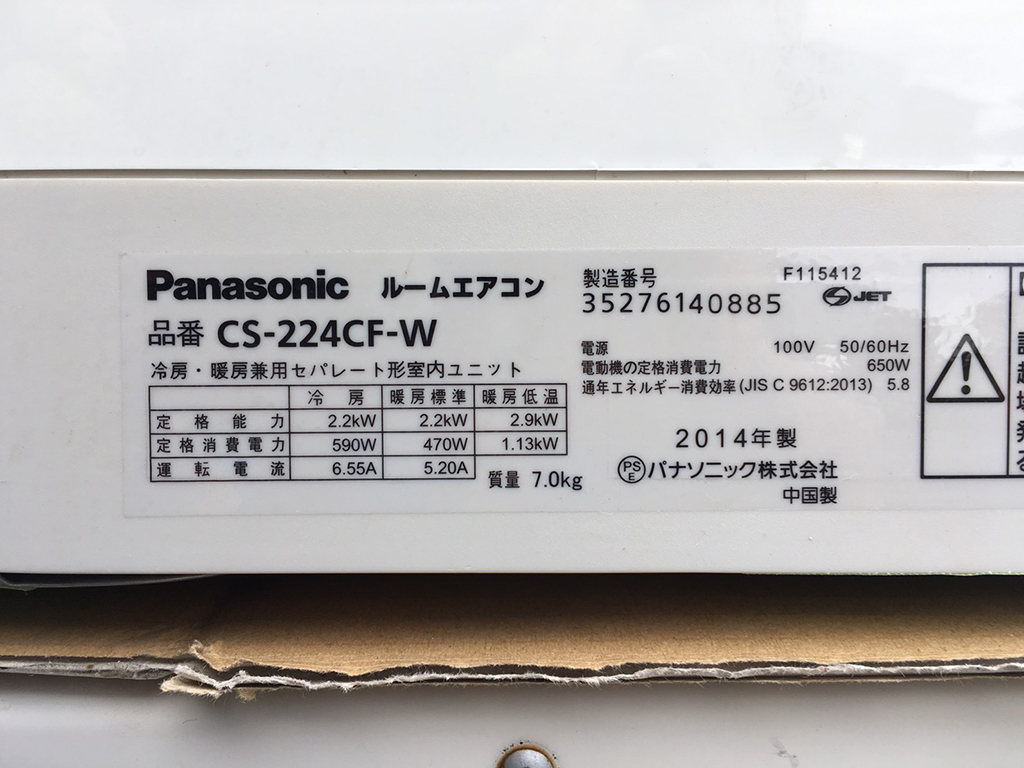 Panasonic(パナソニック)エアコン CS-224CF-Wを買取|東京都品川区にて家電製品の買取